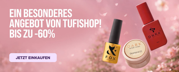 Der Online Shop TUFISHOP ist ein Ort, an dem die Schönheit immer lebt. Hier findet jedes Mädchen moderne Produkte der Schönheitsindustrie, die ihr helfen, noch besser auszusehen. Alles für die Maniküre und Pediküre, für die Pflege der Nägel und Hände, alles für Make-up und Wimpernverlängerung, Körperpflege, Haarpflege und viele weitere Kosmetika warten im Onlineshop sowie in den sieben Filialen des Unternehmens auf ihre Kundinnen.