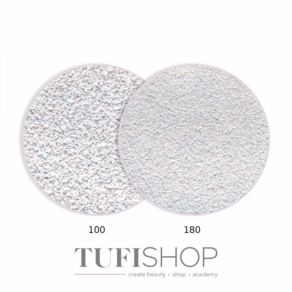 180 ist die beliebteste Wahl unter Stylisten. Die universellste Abstufung wird erfolgreich zum Kürzen der Nägel, zum Feilen und Entwickeln einer Hybridmasse sowie zum Nivellieren der Gelmasse eingesetzt.
