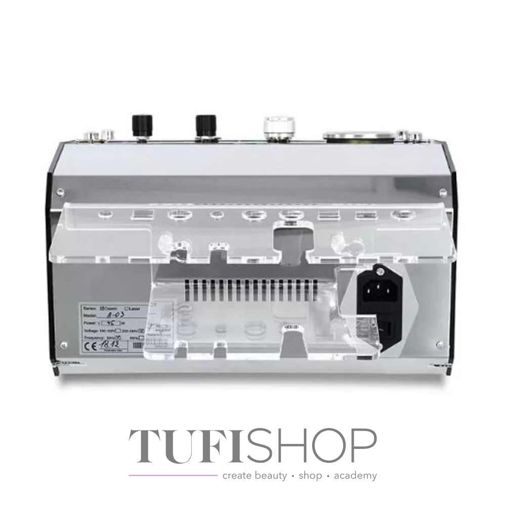 Mit dem Kosmetikgerät A-03 können Sie mehrere beliebte kosmetische Eingriffe gleichzeitig durchführen. Dadurch kann ein Schönheits- oder Schönheitssalon die Anzahl der angebotenen Dienstleistungen erhöhen, ohne dass zusätzliche Geräte angeschafft werden müssen. Mit den notwendigen Düsen in der Konfiguration und den hochwertigen Eigenschaften wird das Schönheitsgerät zu einem unverzichtbaren Helfer für die Kosmetikerin. Mit diesem Gerät durchgeführte Behandlungen verursachen keine Beschwerden, nehmen nur ein Minimum an Zeit in Anspruch und die Wirkung ist sofort sichtbar. Das Kosmetikgerät verfügt über ein übersichtliches Bedienfeld, das der Kosmetikerin die Arbeit erleichtert und das Risiko von Fehlern verringert.