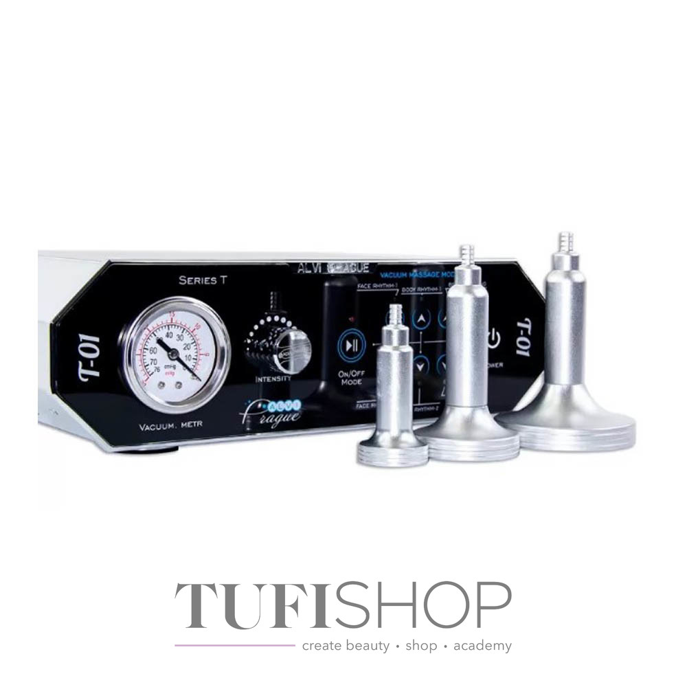 Das Vakuummassagegerät T-01 ist für kosmetische Gesichts- und Körperbehandlungen konzipiert. Die Arbeit mit dem Gerät erfordert keine besonderen Kenntnisse und liefert gute Ergebnisse. Mit der notwendigen Konfiguration der Düsen und seiner hohen Qualität wird das Vakuummassagegerät zu einem unverzichtbaren Helfer für die Kosmetikerin. Dieses Gerät ist kompakt und leicht. Das moderne Vakuummassagegerät T-01 ist mit drei unterschiedlich großen Rolldüsen ausgestattet, die mit starken Hülsen verbunden sind und eine Hohlform haben. All dies ermöglicht das Ansaugen von Luft von der Körperoberfläche und das sanfte Einziehen von Haut und Gewebe in den verlängerten Düsenboden mit paralleler Rollenmassage.
