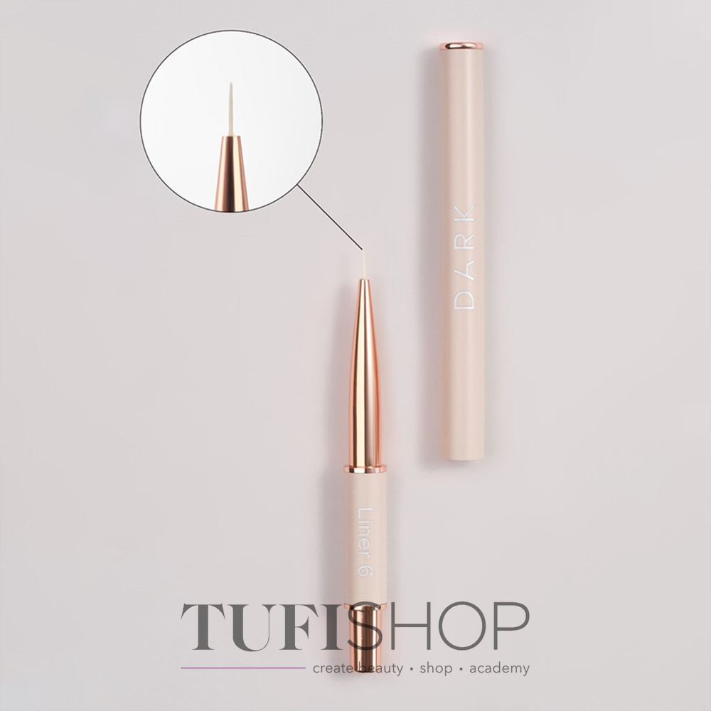 Der Funktionalität von Liner-Manikürepinseln sind keine Grenzen gesetzt. Mit ihnen lassen sich dünne gerade Linien zeichnen, Frenchlack auftragen, Löcher zeichnen und echte Bilder auf den Nägeln erzeugen. Neben dem Design sind dünne Pinsel wichtig für das präzise Auftragen, Verteilen und Ausrichten des Materials unter der Nagelhaut. Der DARK-Linerpinsel ist ein praktisches und praktisches Werkzeug, das alle genannten Aufgaben problemlos meistert. Hochwertige Sammlung und Widerstandsfähigkeit gegen mechanische Beschädigungen tragen dazu bei, dass der dunkle Pinsel ein treuer Helfer und Erfolgsgarant für die gewagtesten kreativen Ideen bleibt.