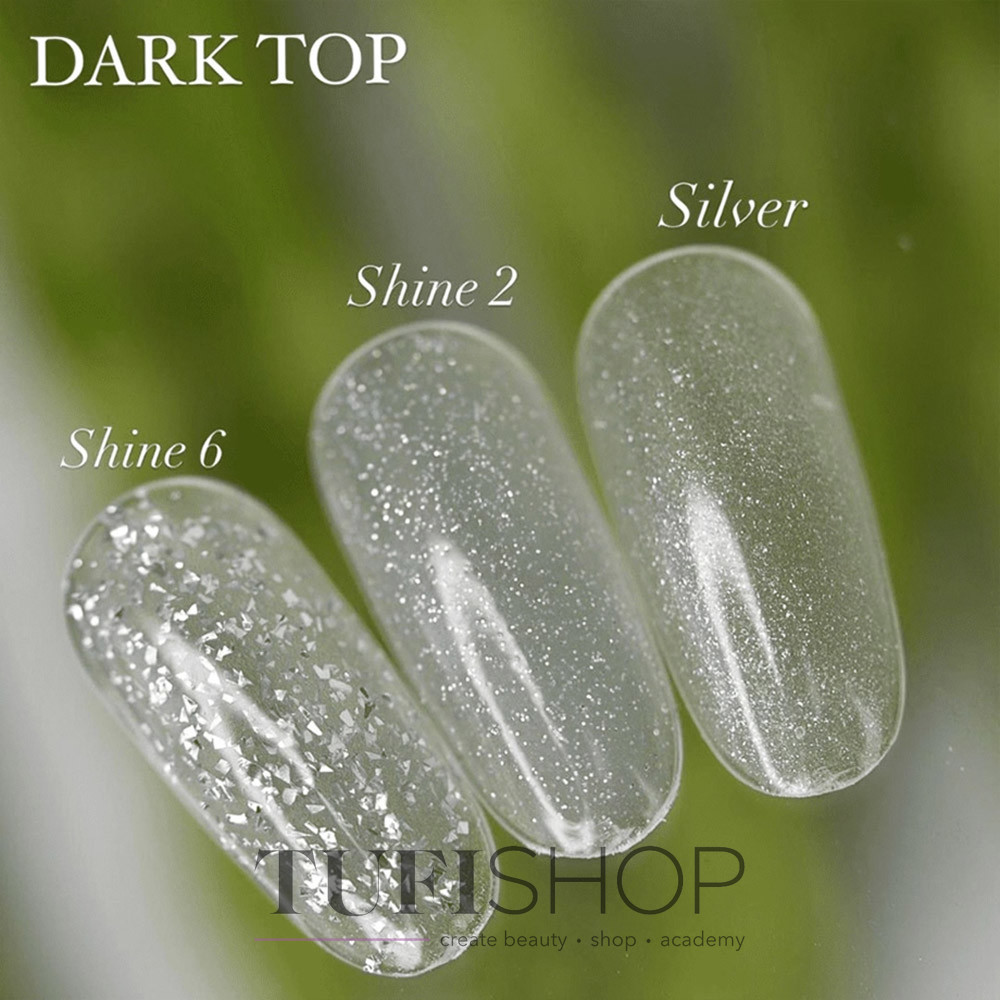 DARK Top – Top mit Glitzer für Gellack einer bekannten Marke. Die Oberseite lässt sich einfach anwenden, verteilt sich nicht und liegt gleichmäßig auf der Nagelplatte. Hat eine mittlere Konsistenz. Es hat eine dichte Farbe und wird empfohlen, auf Gellack ähnlicher Farbe aufgetragen zu werden. Es wird nicht empfohlen, einen egalisierenden Decklack zu verwenden. Tragen Sie eine dünne Schicht auf die aufgetragene Gelpolitur oder Tarngrundierung auf.