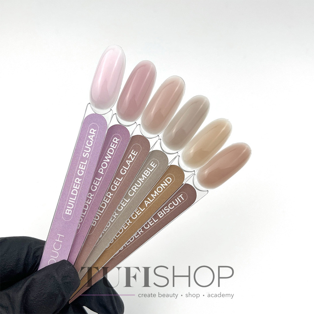 Touch Builder Gel ist ein Gel zur Stärkung, zum Aufbau, zur Reparatur und für voluminöse Designs. Es hat eine mittlere, eher dicke und angenehme Textur, lässt sich gleichmäßig und leicht auf der Nagelplatte verteilen, gleicht Unvollkommenheiten perfekt aus und kaschiert sie. Das Gel ist gut pigmentiert und bedeckt die Nagelplatte nicht mit einer Großen Schicht.