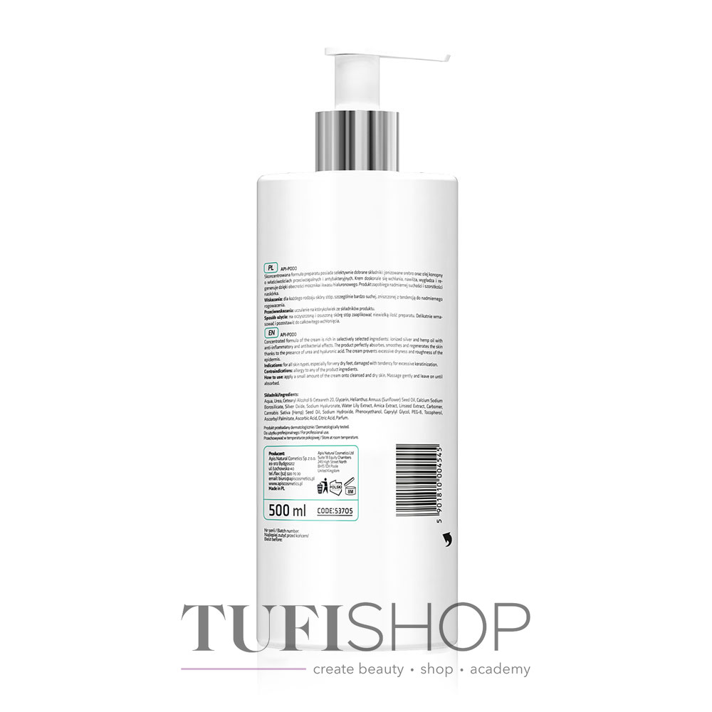 APIS-API-PODO INTENSE intensive regenerating cream for very dry and rough foot skin. Thanks to the presence of kokum oil, inulin and almond oil, it restores the softness of the feet, nourishes for a long time and prevents excessive keratosis. The formula contains a high concentration of 30% urea, hyaluronic acid, fir extract, vitamin E and soothing d-panthenol. It instantly increases epidermis moisturization, accelerates regeneration, makes it firm and visibly smoothed. The addition of natural essential oils of eucalyptus and lavender has an antiseptic effect, leaving a pleasant soothing sensation.