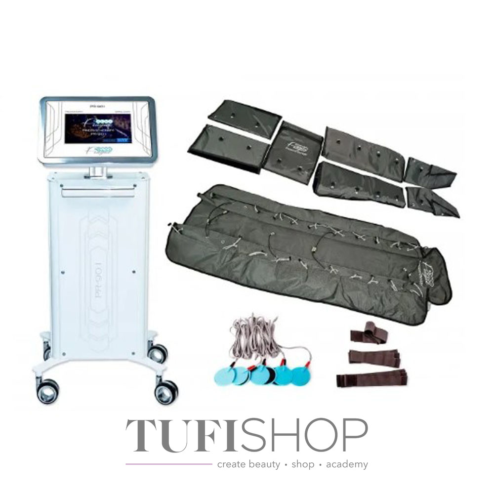 The PR-901 pressotherapy apparatus is intended for use in body shaping centers, professional salons and beauty clinics. The pressotherapy procedure is painless and consists in removing lymph stagnation in certain areas of the body's lymphatic system. Lymphatic drainage is carried out using a special suit that compresses parts of the body by supplying air into it. The cosmetic device has a large number of autonomous air channels and the ability to fine-tune the parameters of electrical impulses.