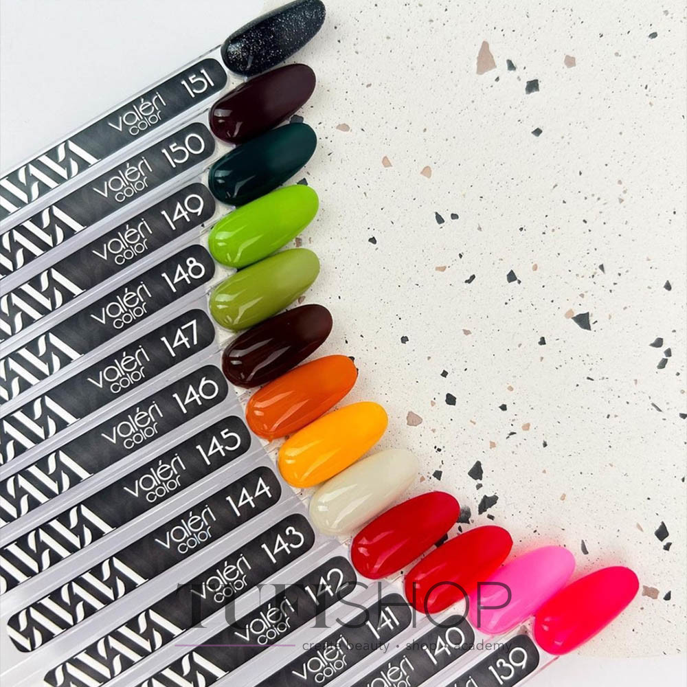 Valeri gel polish is a quality and affordable material, developed by professionals for masters of nail industry! The palette has many different colors and series. The main collection of gel polish consists of highly pigmented and wear-resistant colors. Easy to use, a single coat is enough, which is evenly distributed over the nail plate and does not drip onto the side rollers. Thanks to a very favorable and convenient volume, you can create your own large palette of gel polish. The basic collection allows you to get a perfect coverage with a dense color.