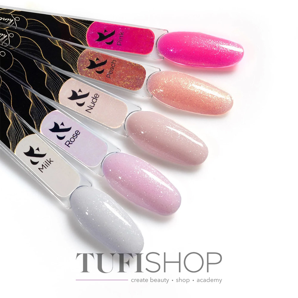 F.O.X Shine Gel Pink – a medium-viscosity liquid gel for nail strengthening with a bright pink camouflaging shade and refined fine shimmer. Suitable for both short and long nails, perfectly levels the surface, and does not deform during wear.