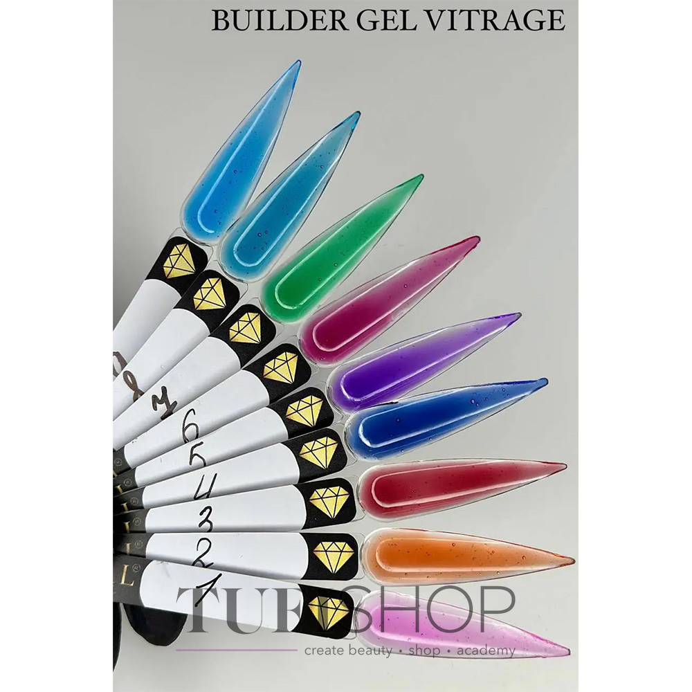 Builder Gel Vitrage Crystal Professional – a gel for nail sculpting and repair. A collection of stained-glass, semi-transparent colored gels that allow you to achieve the effect of “wet” glass nails as well as a mosaic effect in manicure. It adheres tightly to the nail plate surface, preventing air bubbles. Made from premium-quality materials.