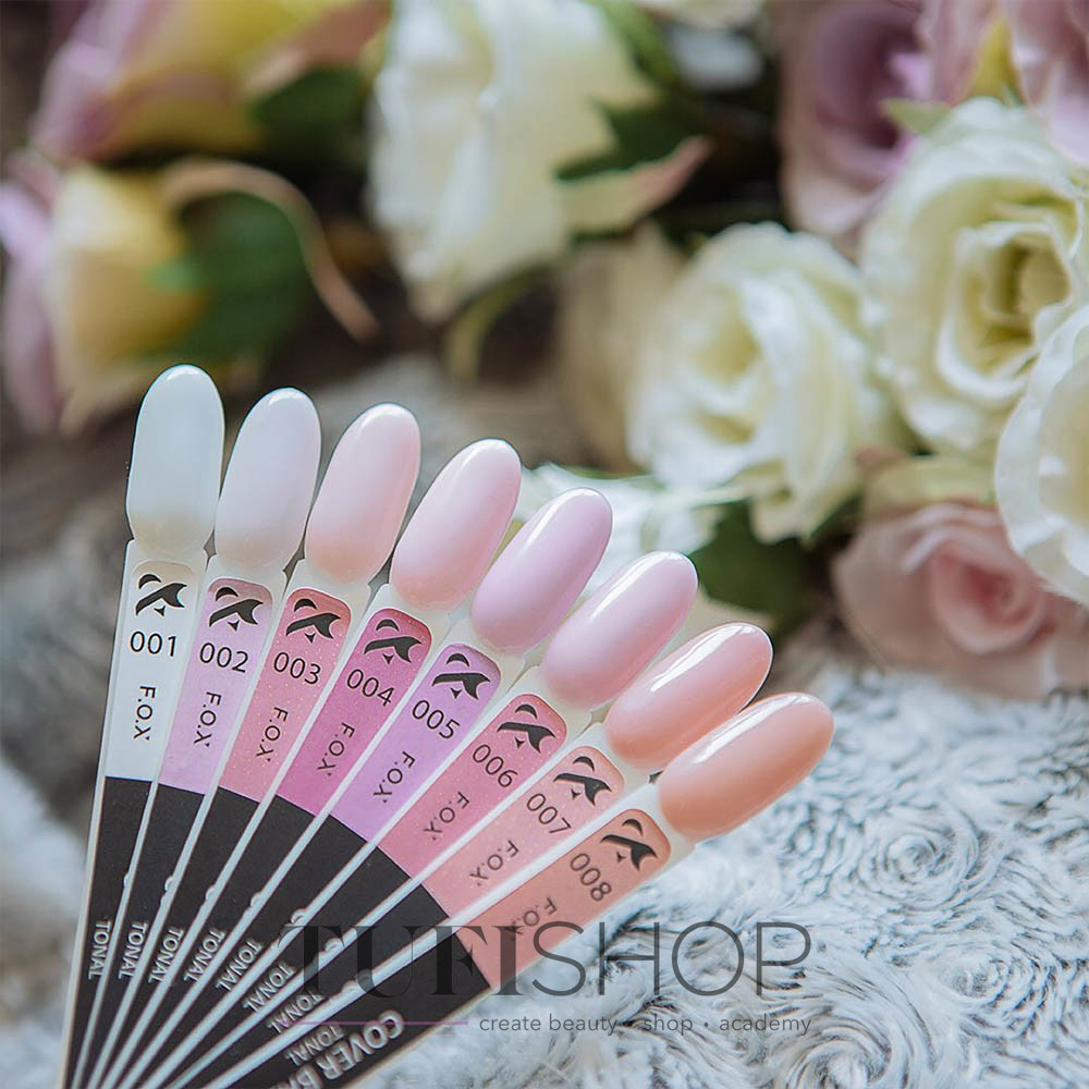 FOX Tonal Cover Base is a unique color base for nails that guarantees a strong grip, prevents peeling and chipping, so that the durability of any gel polish is guaranteed. 8 incomparable soft pastel camouflage shades will hide the flaws of the nail plate, give a healthy and well-groomed look to the nails, and will not leave indifferent both the master and the client. Due to its medium viscosity and rubber base, the base is easy to lay on the nail and self-levels on the nail plate, which makes it very convenient to use. On problematic nails, it is advisable to apply a thin layer of transparent under the color base .