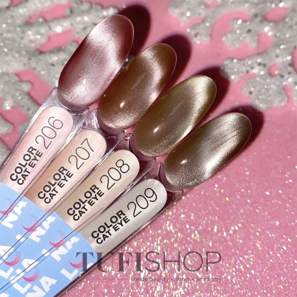 LUNA Gel Polish is a professional colored gel nail polish of high quality. It has an optimal consistency, which makes it easy to apply to the nail. It does not lie in strips when applied and is easy to level. LUNA gel-polish is perfectly pigmented, which can be applied in one or two thin layers. The handy bottle and quality brush ensure even distribution of the lacquer over the entire nail plate, without dripping or skipping. LUNA Cat Eye gel polish turn an ordinary manicure into something magical. The gel polish contains small metallic particles, they give a magical glow to the nails. To get the cat eye effect, you need to use a special magnet.
