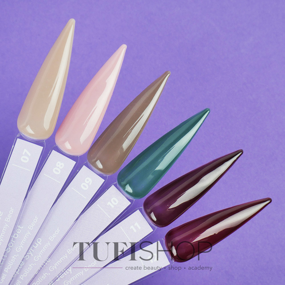 From deep berry shades to delicate nutty notes - the palette of Gummy Bear TUFI profi opens up limitless possibilities for experimentation and creation of exquisite nail-images. Gel-lacquers from this collection are characterized by a translucent consistency, which makes them ideal for fashionable stained glass designs. Discover the pleasure of color and texture with each new shade!
