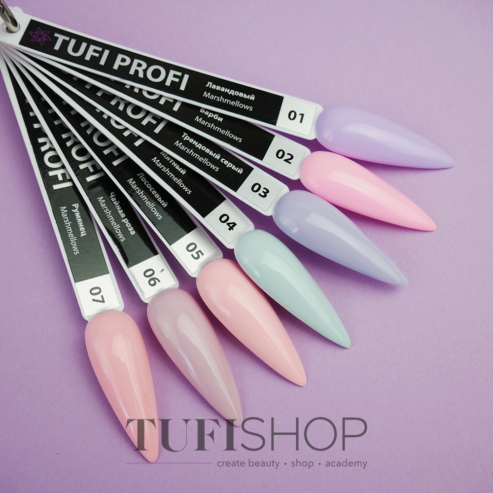TUFI profi PREMIUM presents a new trendy line of gel polishes called Marshmallows. A convenient bottle and a high-quality brush guarantee an even distribution of the varnish over the entire nail plate, without leakage and gaps. Gel polish Tufi profi has a durable coating, does not crack, provides application with ease and pleasure.