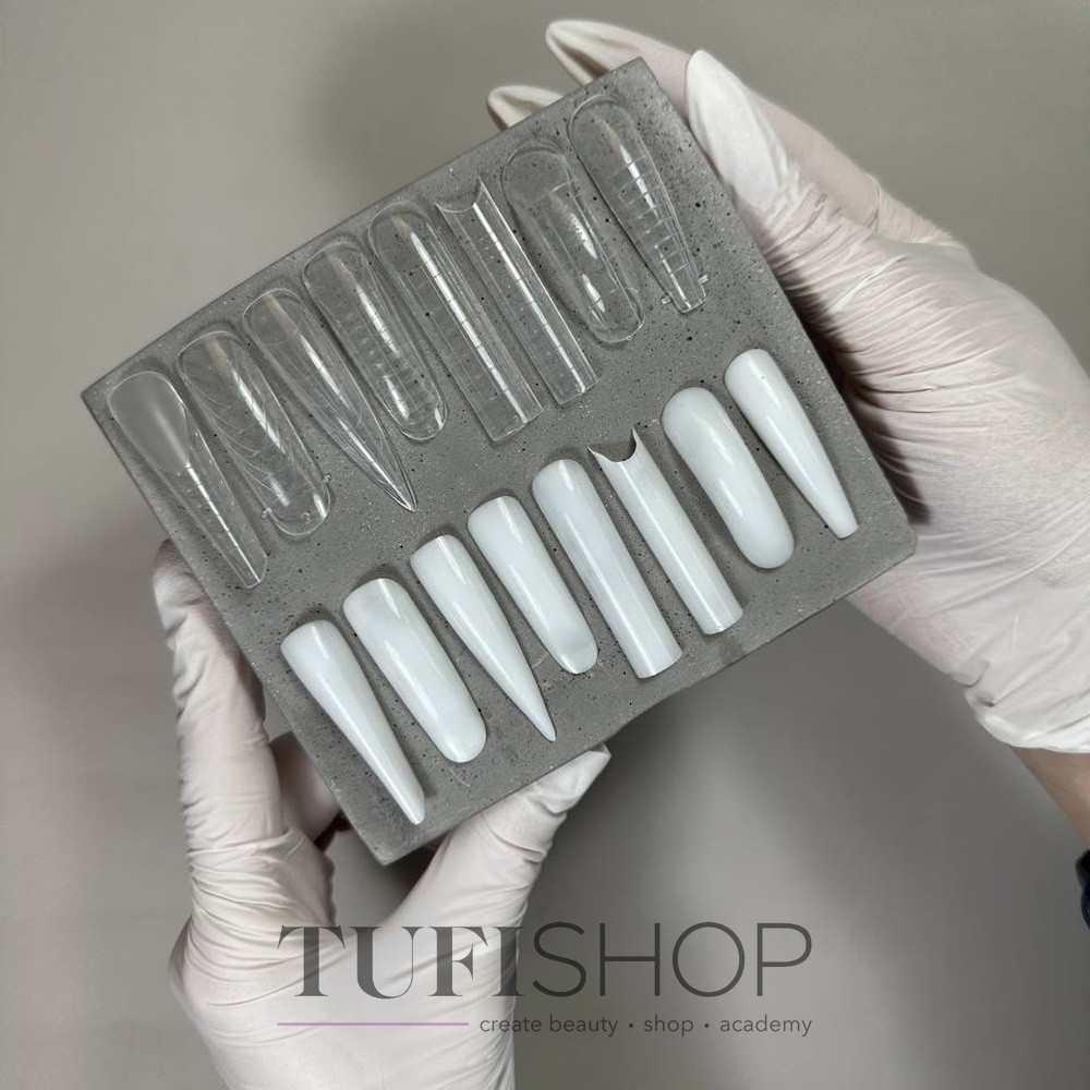 The possibility of using top molds for nail extensions depends on the initial data of the nail plate. If the shape, size and curve of the arch are suitable, this method greatly simplifies and speeds up the process of building up, requires a minimum of filing, while not limiting the combination of materials and creative experiments.