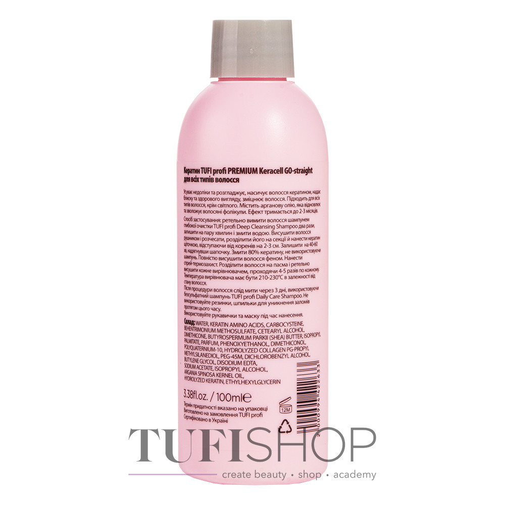 Active ingredients: keratin amino acids, argan oil, shea butter, collagen, Polyquaternium-10