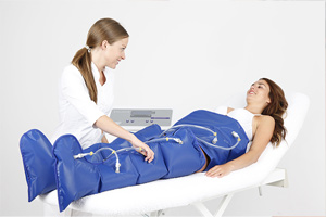 Before the procedure, the patient is put on special cuffs (arms, legs, waist, hips) into which air is pumped. During this, soft tissue compression occurs, due to which blood circulation is activated. Such an effect of pressure on parts of the body helps to remove not only excess fluid from the tissues, but also stagnant metabolic products. As a result of lymphatic drainage , the lymphatic system is activated, the entire body is actively cleansed of toxins and toxins.