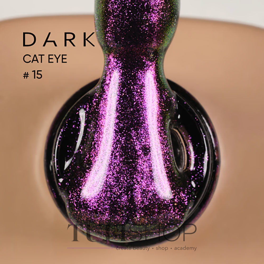 DARK Gel polish is a professional nail material of high quality. The medium density composition guarantees easy work, as the materials fill in irregularities well and are evenly distributed on the nail plate. It does not lie in strips when applied and is easy to equalize. Gel polish DARK perfectly pigmented, perfectly cover the nails after one or two layers, which allows you to create rich and bright manicures with minimal effort and without a thick layer. With the wide palette of colors that the nail brand presents, you can let your imagination fly and create delightfully beautiful pastel as well as rich saturated manicures. DARK Cat Eye gel polish turn an ordinary manicure into something magical. The gel polish contains small metallic particles that give a magical glow to the nails. To get the cat eye effect, you need to use a special magnet.