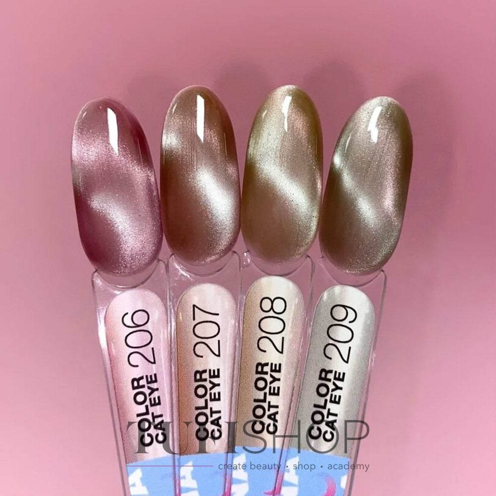 LUNA Gel Polish is a professional high-quality colored gel polish for nails. It has an optimal consistency, which makes it easy to apply to the nail. It does not streak during application and levels smoothly. LUNA Gel Polish is perfectly pigmented and can be applied in either one or two thin layers. A convenient bottle and a high-quality brush ensure even distribution of the polish over the entire nail plate, without flooding or gaps. LUNA Cat Eye Gel Polishes transform an ordinary manicure into something magical. The gel polish contains fine metallic particles that give nails a mesmerizing shine. To achieve the cat eye effect , a special magnet must be used.