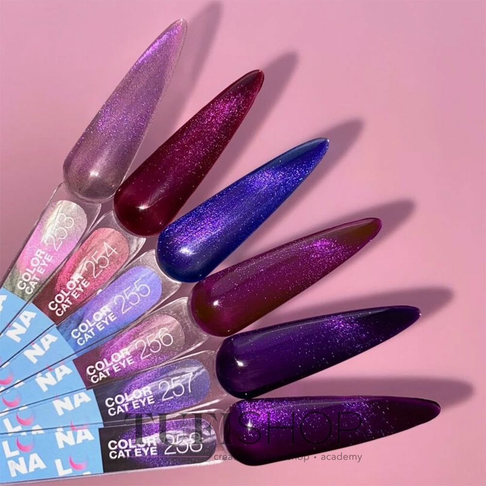 LUNA Cat Eye Gel Polish is a gel polish with a “cat eye” effect. Cat Eye gel lacquer contains thousands of small metallic particles that react perfectly to the action of a magnet, creating unique patterns and bright highlights on the nails. The unique formula of Color Cat Eye combines two of the most trending effects - cat eye and stained glass. This revolutionary combination allows you to create a manicure that strikes you with its depth and beauty.