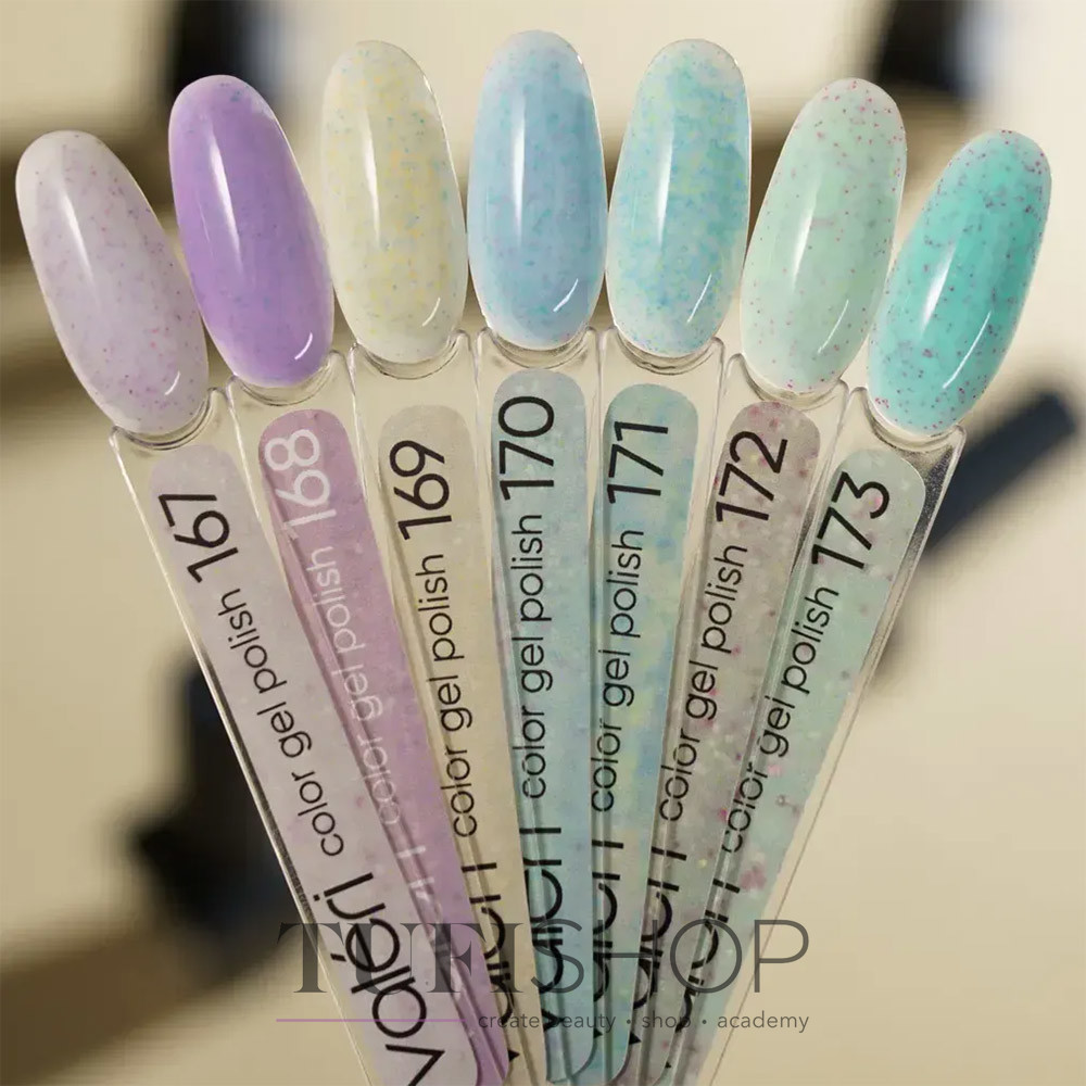 Valeri gel polish is a quality and affordable material, developed by professionals for masters of nail industry! The palette has many different colors and series. The main collection of gel polish consists of highly pigmented and wear-resistant colors. Easy to use, a single coat is enough, which is evenly distributed over the nail plate and does not drip onto the side rollers. Thanks to a very favorable and convenient volume, you can create your own large palette of gel polish. The basic collection allows you to get a perfect coverage with a dense color.