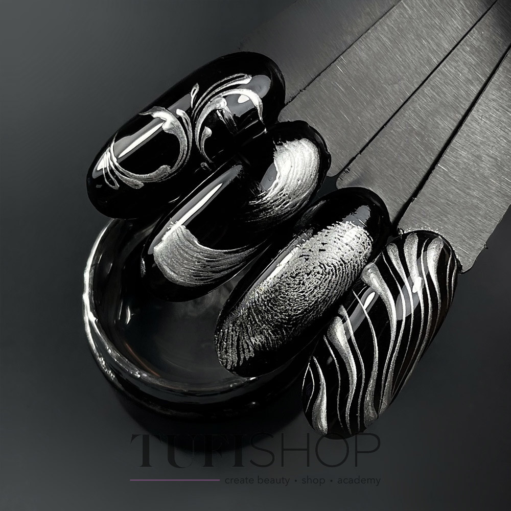 The more different techniques and design variations a manicurist has in his arsenal, the more clients he can attract. That's why you simply need to add NAILSOFTHEDAY Metallic paint to your arsenal . The high level of pigmentation allows you to draw the perfect color pattern. Gel paint does not spread over the surface of the nail and is applied easily and evenly. Ideal for stamping, decorative coating, French, fine lines and monograms.