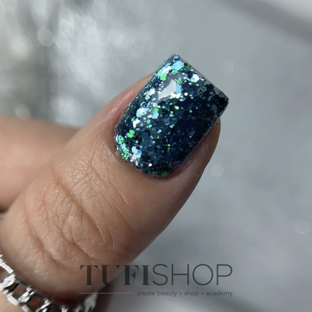 NAILSOFTHENIGHT Brokat gel is a design gel of unsurpassed quality, featuring high saturation of multi-colored brokat and glitter.