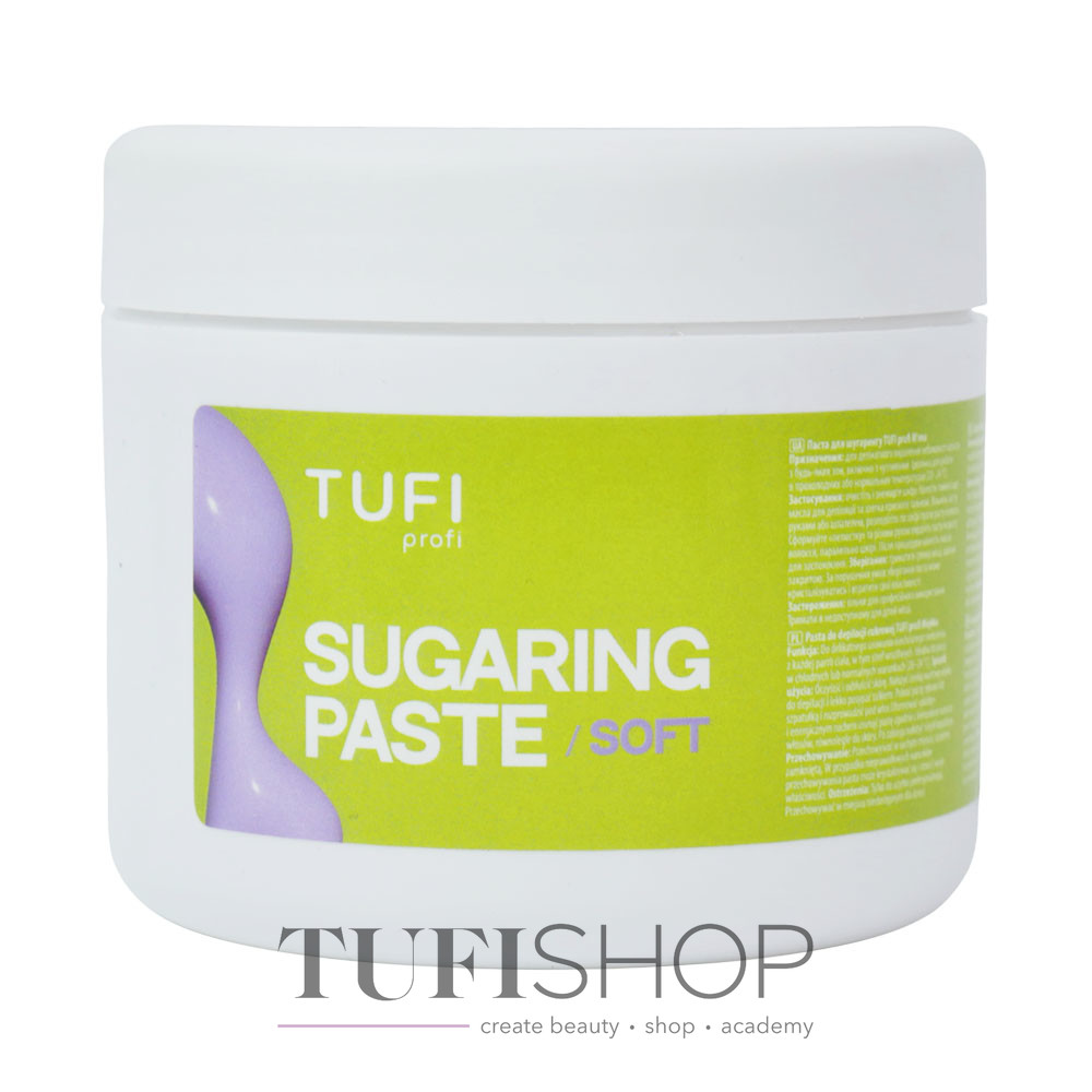 TUFI profi Sugaring Paste Soft is a professional product for fast and comfortable hair removal on large areas in cool rooms. The TUFI profi paste line is designed with temperature, skin moisture, hair type, and treatment zone in mind, allowing the technician to select the ideal density for stable results both in the salon and at home. The soft consistency is recommended for work at 18–22 °C, under normal humidity, and for removing fine, мягкие hairs. Best suited for large zones: legs, arms, back.