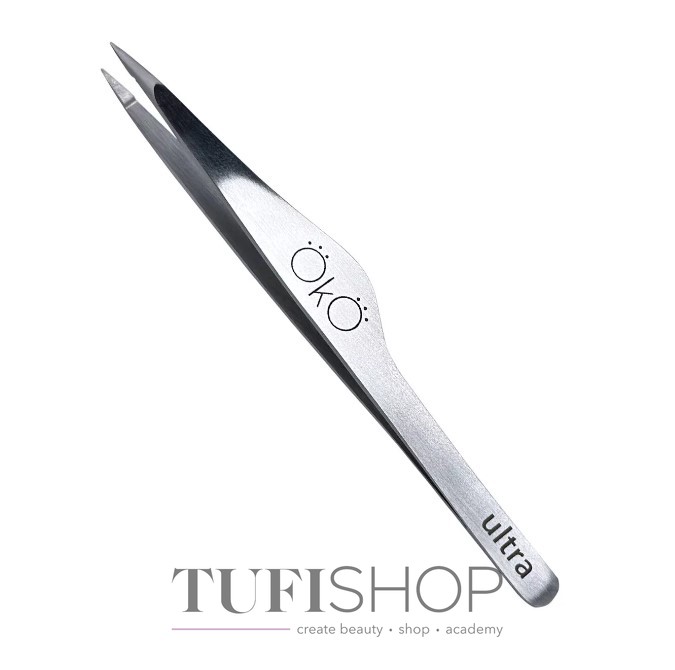 OKO Ultra Point - professional point tweezers for perfect and precise correction of eyebrow lines. The edges of the tweezers are hand-sharpened and cut for maximum density, allowing the tweezers to capture the finest hairs without breaking them. The comfortable shape and gentle pressure of the tweezers provide complete control and real precision in eyebrow correction, as well as convenience and speed in the work of the stylist.