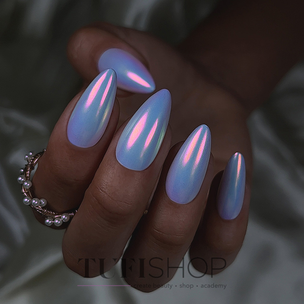Mirror from Slowianka Nail Trends is a liquid nail pigment that brings comfort to the nail design process, inspires creativity, and delivers incredible beauty! This innovative solution is much easier to use than traditional powder and offers numerous advantages for stylists while giving clients a unique and striking look. No more dust scattered around the salon, no more mess, and no wasted time cleaning up. The liquid pigment is easy and quick to apply, yet highly effective and long-lasting. It does not wear off at the tips or from the nail surface. The perfect product for modern times where time, money, and stunning results matter! Liquid Mirror Powder is a gorgeous collection of mirror pigments with a chameleon effect.