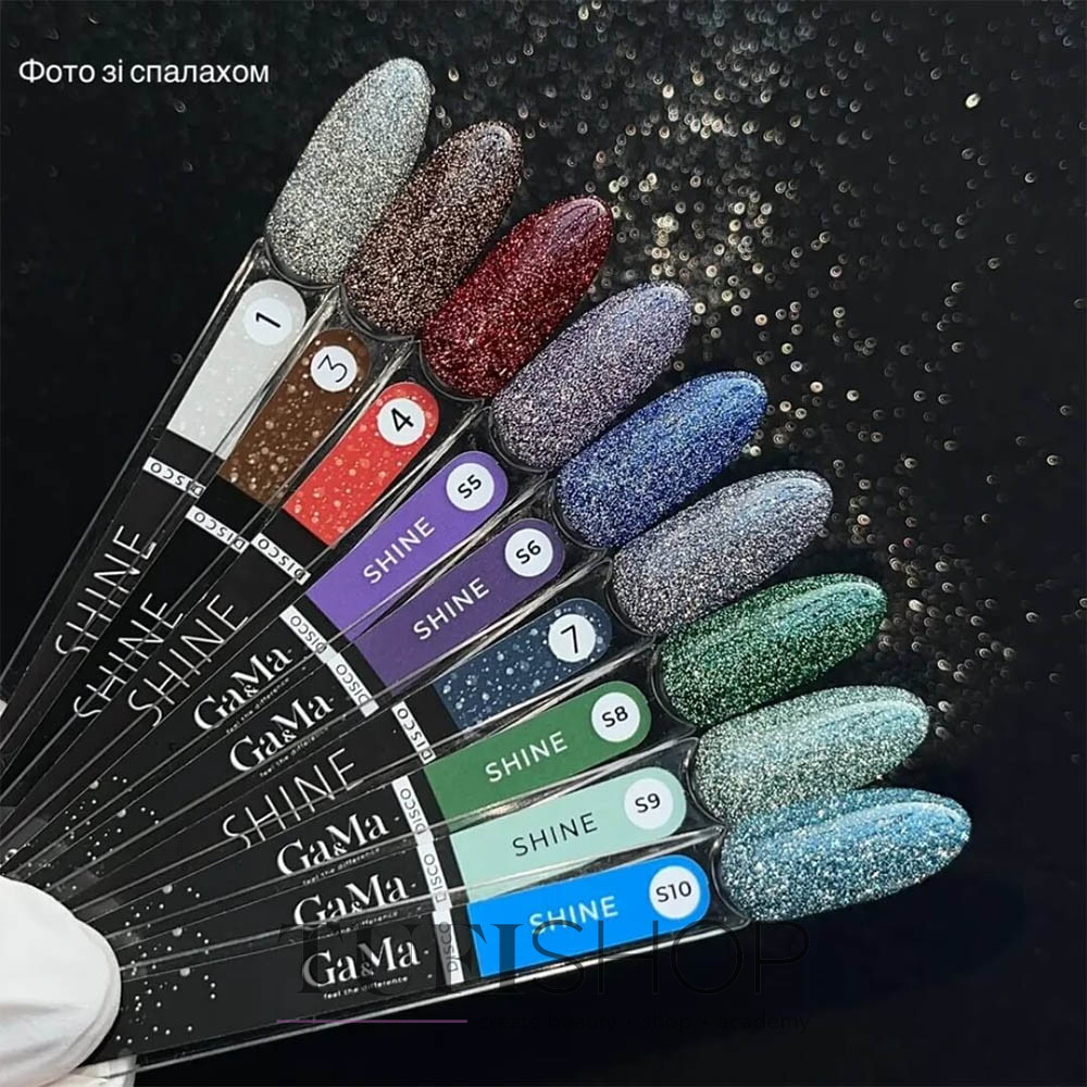 GA&MA Shine Gellack ist eine Kollektion von Gellacken, die einen schimmernden Glanzeffekt auf Ihren Nägeln erzeugen. Diese Gama-Gellacke reflektieren Lichtstrahlen und verleihen Ihren Nägeln ein helles und glamouröses Aussehen. Dieses Produkt könnte bei denjenigen beliebt sein, die ausdrucksstarke und spektakuläre Maniküren bevorzugen.