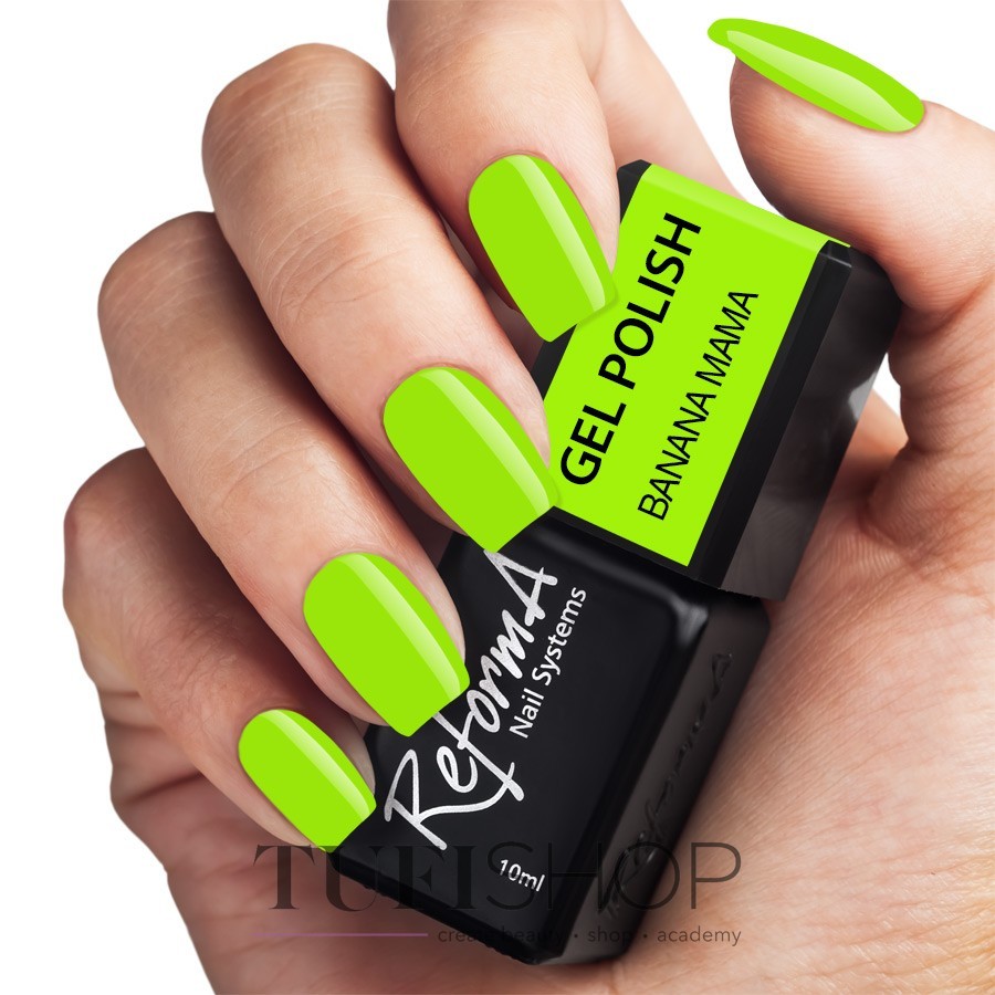Reform produziert hochwertige Hybrid-Nagellacke. Die Palette umfasst viele verschiedene Farben und Serien. Es lohnt sich, auf die Kollektion der Hybridlacke zu achten, die aus perfekt aufeinander abgestimmten saftigen und satten Farbtönen besteht. Sie eignen sich perfekt für stilvolle Abdeckung und unvergessliche Designs. Dank seiner dicken Konsistenz Reform Ein Hybridlack verteilt sich nicht und nivelliert sich selbst auf der Nagelplatte. Der Pinsel ist breit und bequem. Mithilfe der breiten Farbpalette der Nagelmarke können Sie Ihrer Fantasie freien Lauf lassen und eine wunderschöne Maniküre kreieren, sowohl im Salon durch einen Profi als auch zu Hause.