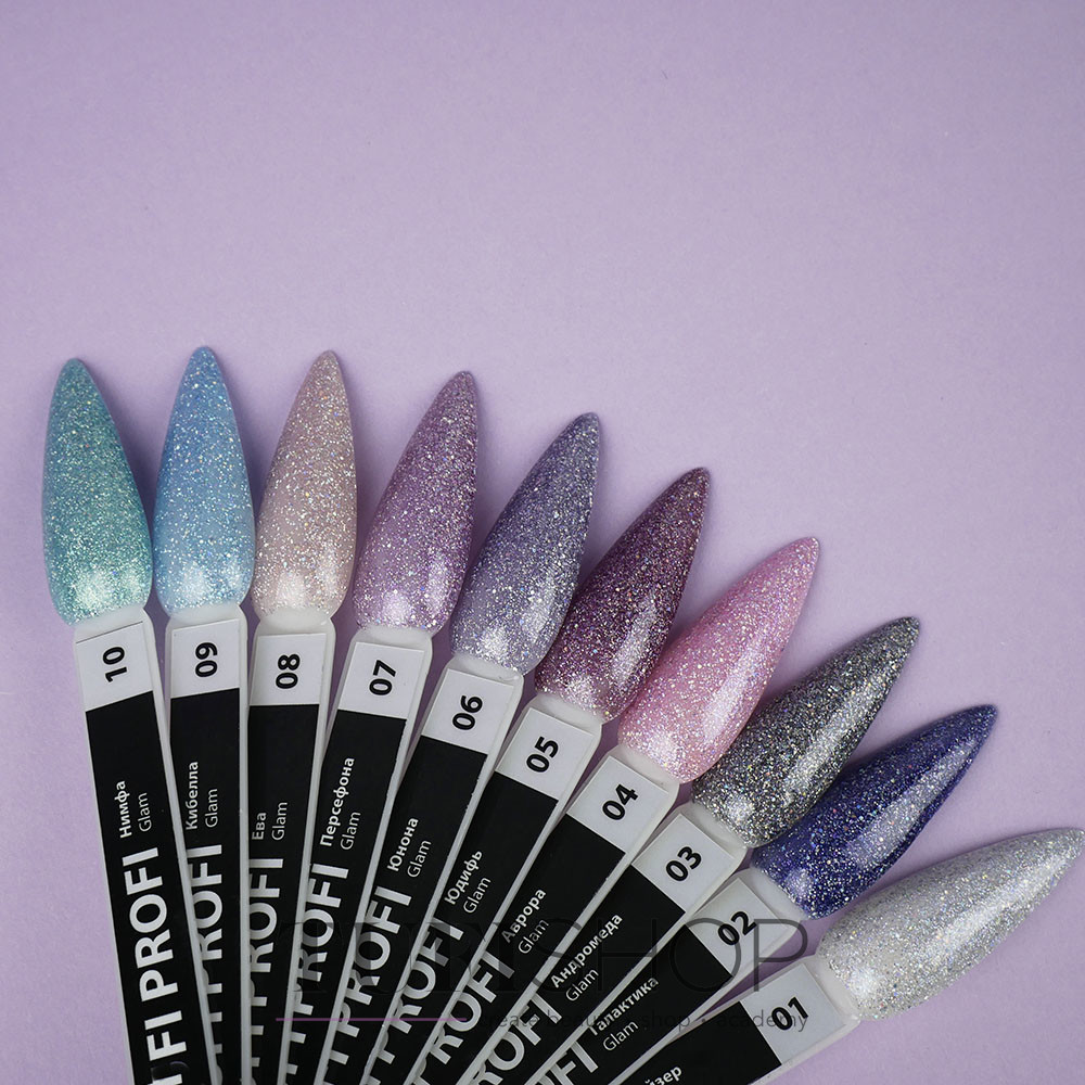 TUFI profi PREMIUM Glam - Sammlung Lacke Gel mit hellen, schicken Glitzern. Es ist Hollywood, wenn man blond ist und es gewohnt ist zu strahlen. Oder Glam-Rock, wenn Sie brünett sind und schwarzes Leder und Stahl lieben. Aber wer auch immer Sie sind, eines ist klar: Eine solche Frau muss gewonnen und erreicht werden. Er ist ein „kaltes Kind“, das seinen Wert kennt.