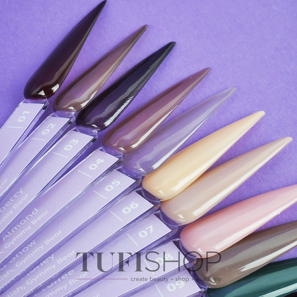Von tiefen Beerentönen bis hin zu zarten Nussnoten eröffnet die Gummy Bear TUFI Profi-Palette zahllose Möglichkeiten zum Experimentieren und Kreieren exquisiter Nagel-Looks. Die Gel-Lacke dieser Kollektion verfügen über eine transluzente Konsistenz und eignen sich daher ideal für modische Buntglas-Designs. Entdecken Sie mit jedem neuen Farbton die Freude an Farbe und Textur!