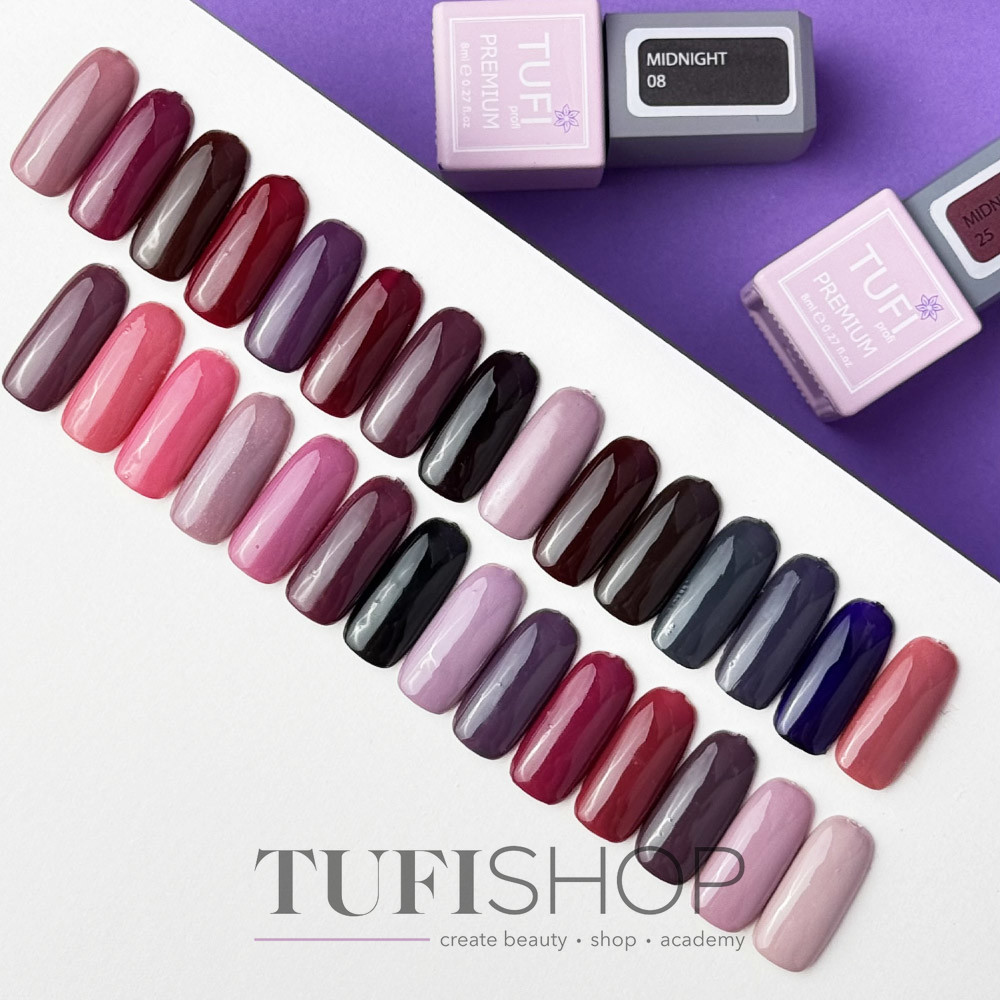 Warmer Abend, wunderschöner Sonnenuntergang, angenehme Gespräche und Schatten Lacke Gel Mitternacht auf deinen Nägeln. Abendserie in neuen Lavendelgläsern von TUFI profi PREMIUM , inklusive 20 Farbtönen: von Lavender Noon bis Black Eclipse. Wenn Sie die Aufmerksamkeit anderer auf sich ziehen und Ihr Wesen zum Ausdruck bringen möchten, wählen Sie Midnight.