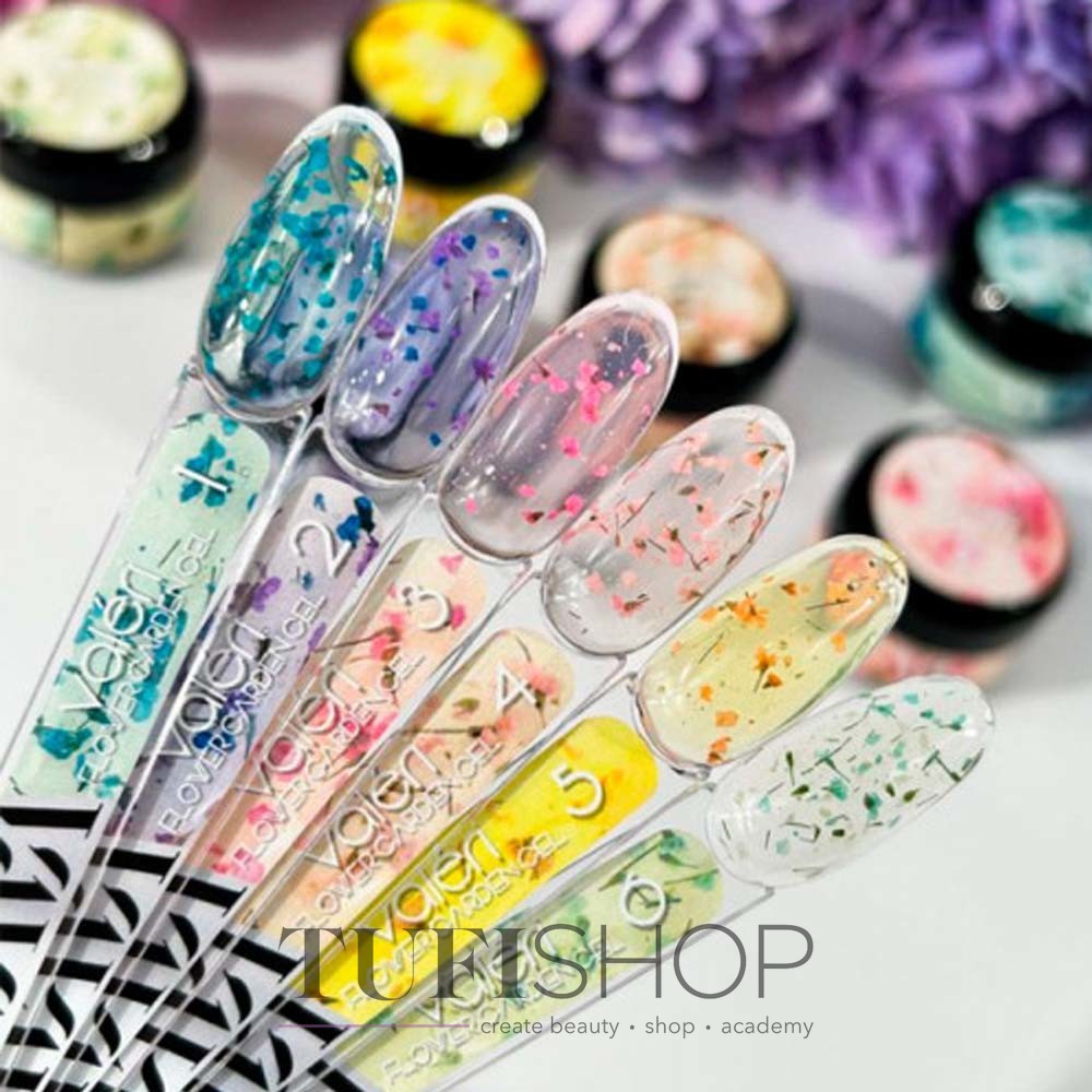 Valeri Flower Garden Gel ist eine Gelkollektion in 6 Farbtönen mit der Zugabe zarter Trockenblumen. Die Gele sind transparent und haben eine leichte Tönung durch zugesetzte Trockenblumen. Dadurch kann eine Farbtiefe erreicht werden und das Dekor im Gel wirkt noch harmonischer und schöner. Das Gel ist mitteldick, lässt sich gut verteilen und gleichmäßig verteilen. Ideal für die Gestaltung zarter Sommer-Frühlings-Designs. Kompatibel mit allen Arten von Beschichtungen.