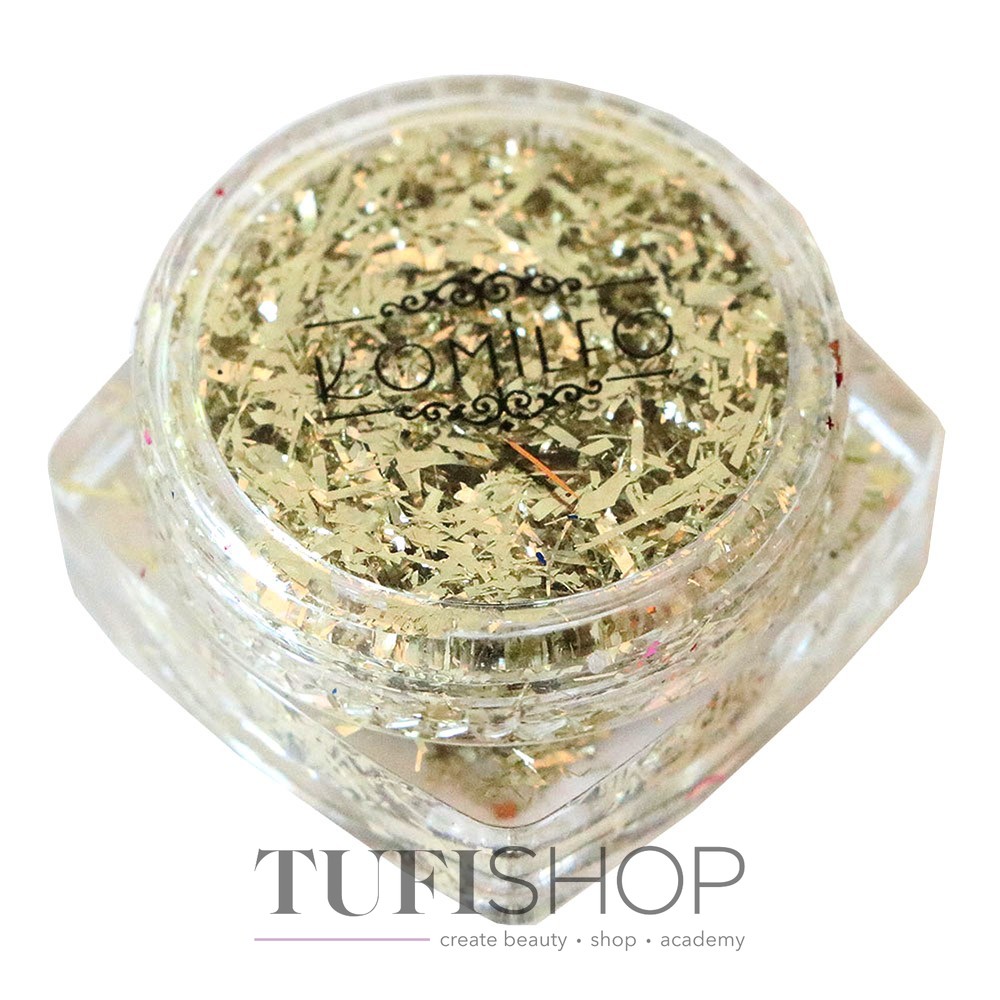 Komilfo Foil Stripes ist ein Chip aus Mikrostreifen aus Folienmaterial, eine weihnachtliche dekorative Nageldekoration, die eine Maniküre abwechslungsreicher macht und dekoriert. Folienstreifen für Nailart glänzen wunderschön und machen die Maniküre farbenfroh und effektvoll. Es kann sowohl für die Maniküre zu Hause als auch für die professionelle Nagelkunst verwendet werden. Es lässt sich einfach mit einem feinen Pinsel, einem Ritzwerkzeug oder einem einfachen Zahnstocher auf Gelpolitur oder Kleber auftragen und anschließend mit einem Decklack, Fixiermittel oder einem klaren Gel fixieren. Mit Hilfe von Strohhalmen können Sie sowohl raffinierte Akzente setzen als auch alle Nägel komplett verzieren. Das Dekor befindet sich in einem Glas, was sehr praktisch ist.