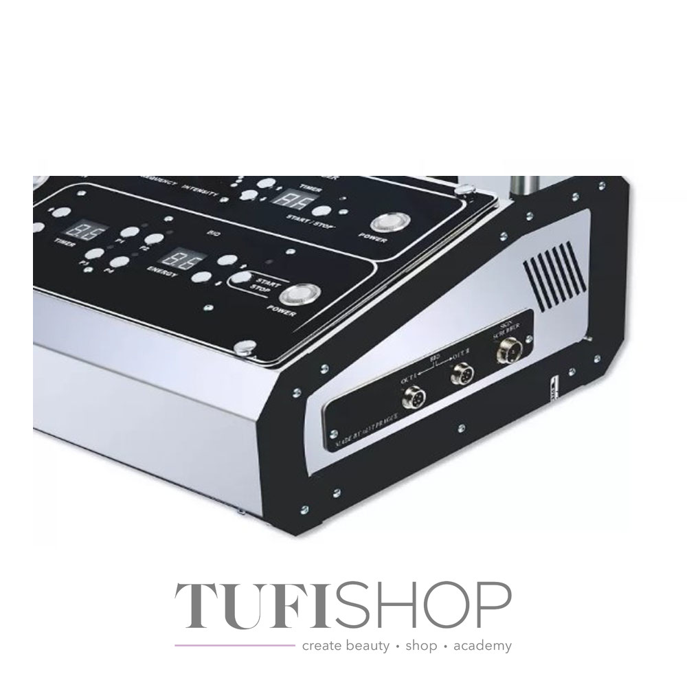 Mit dem Kosmetikmähdrescher F-4 können Sie mehrere beliebte kosmetische Eingriffe gleichzeitig durchführen. Dadurch kann ein Schönheits- oder Schönheitssalon die Anzahl der angebotenen Dienstleistungen erhöhen, ohne dass zusätzliche Geräte angeschafft werden müssen. Mit den notwendigen Düsen in der Konfiguration und den hochwertigen Eigenschaften wird das Schönheitsgerät zu einem unverzichtbaren Helfer für die Kosmetikerin. Mit diesem Gerät durchgeführte Behandlungen verursachen keine Beschwerden, nehmen nur ein Minimum an Zeit in Anspruch und die Wirkung ist sofort sichtbar.