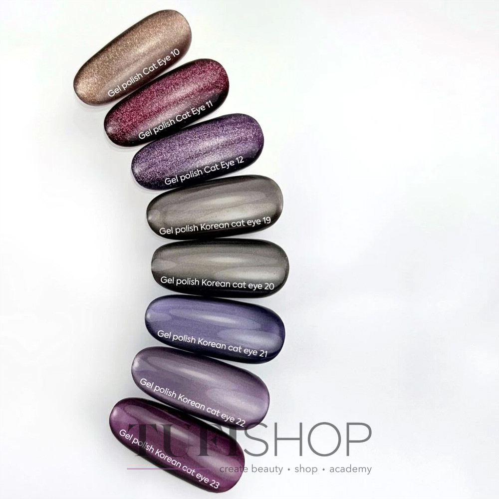 - Tragen Sie den Gel-Nagellack gleichmäßig in einer dünnen Schicht auf und glätten Sie ihn gründlich. Verwenden Sie einen Magneten für den Katzenaugen-Effekt, um den gewünschten Effekt zu erzielen. Tragen Sie eine weitere Schicht auf, um eine noch intensivere Farbe zu erhalten. Aushärtung: UV – 120 Sekunden, LED – 60 Sekunden.
