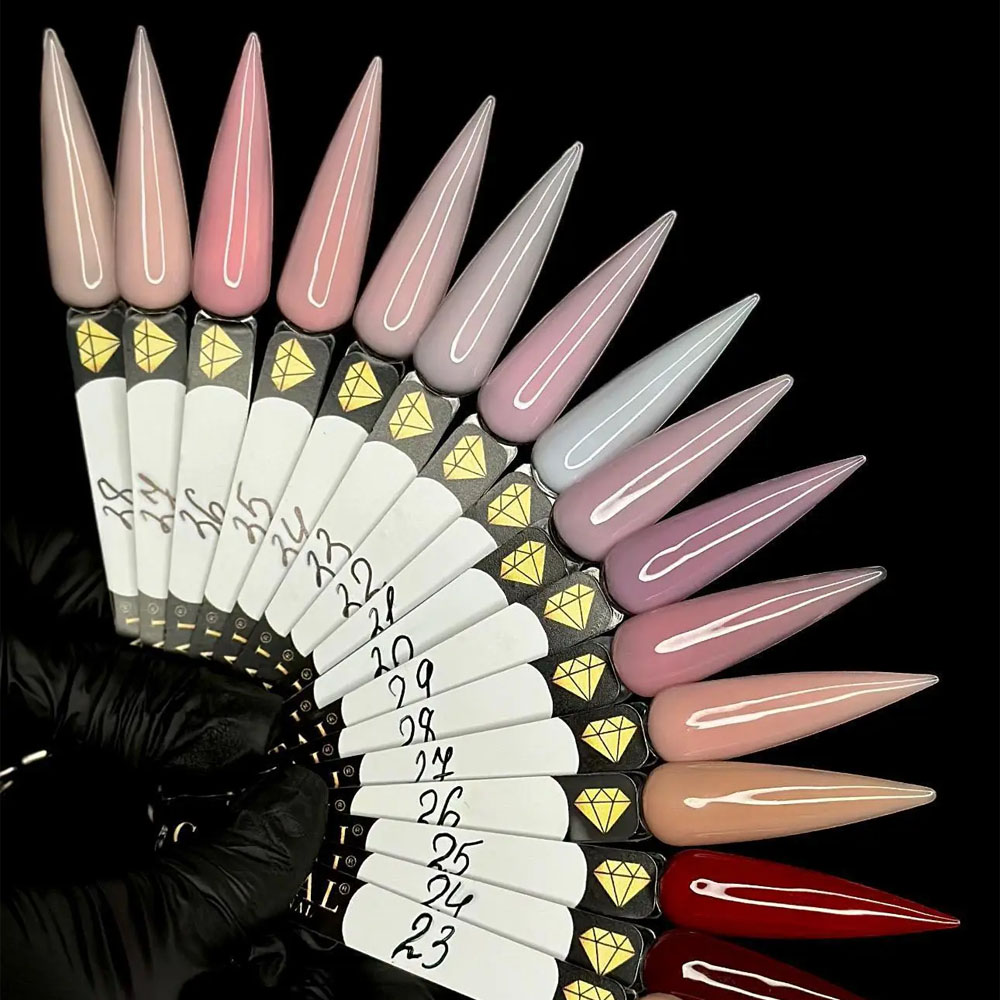 Die Marke bietet neben Basistönen auch dekorative Kollektionen – von zarten Nude-Tönen bis hin zu leuchtenden Gel-Lacken mit Schimmer, Glitzer- und Perlglanzeffekten. So können Nageldesigner trendige Designs kreieren und Kunden eine einzigartige und stilvolle Maniküre genießen.
