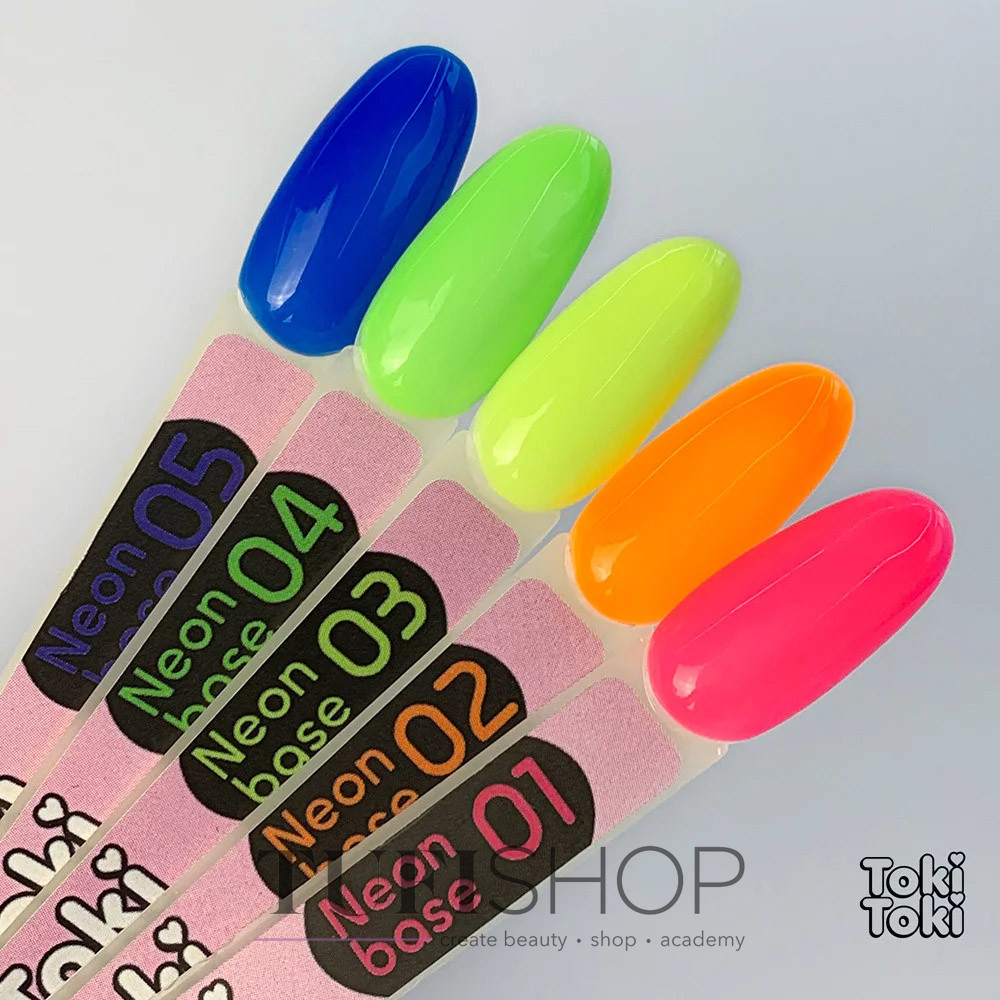 Toki Toki - это стопроцентный must have и must use в мире nail-индустрии. База для маникюра станет идеальной подложкой для покрытия ногтей гель-лаком. Неоновая база удобная в работе, процесс выравнивания ногтевой пластины и нанесение основного слоя упрощается. Производитель Toki-Toki создал сочные летние базы Neon. При нанесении базы можно использовать как классическую технологию, так и капельный метод (техника укрепления ногтей и выравнивание ногтевой пластины). Первоначальный блеск радует долгое время, а покрытие не подведет в длительной носке маникюра.
