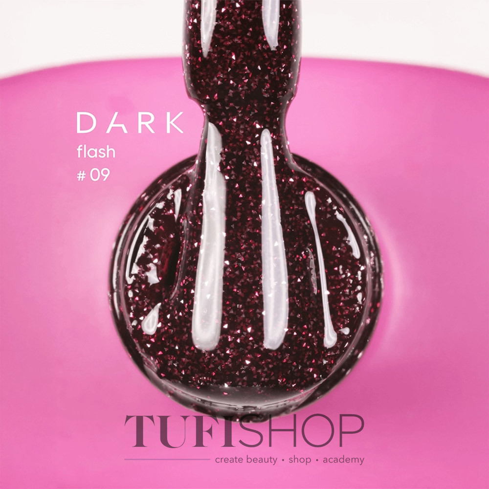Гель-лак DARK - профессиональный материал для ногтей высокого качества. Средний по плотности состав гарантирует легкость работы, поскольку материалы хорошо заполняют неровности и равномерно распределяются по ногтевой пластине. Не ложится полосами при нанесении и легко выравнивается. Коллекция гель-лаков DARK Flash состоит из светоотражающих оттенков, которые оригинально выглядят при дневном и искусственном/ночном освещении. Благодаря специальным частицам, гель-лак обладает невероятной способностью отражать свет, создавая ошеломляющий блеск под вспышками или ярким освещением. В дневном свете он выглядит элегантно, с легким мерцанием, а в темноте – настоящий фейерверк сияния!