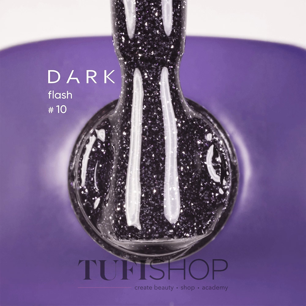 Гель-лак DARK - профессиональный материал для ногтей высокого качества. Средний по плотности состав гарантирует легкость работы, поскольку материалы хорошо заполняют неровности и равномерно распределяются по ногтевой пластине. Не ложится полосами при нанесении и легко выравнивается. Коллекция гель-лаков DARK Flash состоит из светоотражающих оттенков, которые оригинально выглядят при дневном и искусственном/ночном освещении. Благодаря специальным частицам, гель-лак обладает невероятной способностью отражать свет, создавая ошеломляющий блеск под вспышками или ярким освещением. В дневном свете он выглядит элегантно, с легким мерцанием, а в темноте – настоящий фейерверк сияния!