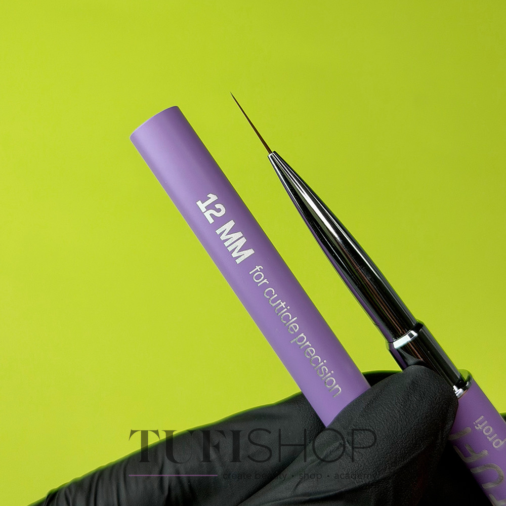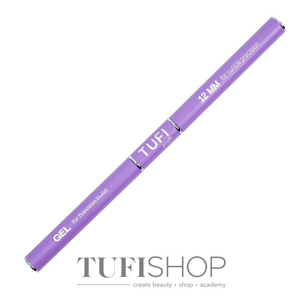 Двусторонняя кисть для маникюра TUFI profi гель #8 / лайнер 12 мм — базовый инструмент в ежедневной работе мастера, используемый на всех этапах маникюра: от набора материала до нанесения, выравнивания и доведения покрытия до идеального вида. Формат 2-в-1 объединяет в одном корпусе полноценную кисть для геля и тонкий лайнер, позволяя выполнять ключевые маникюрные задачи без постоянной замены инструментов. Основная рабочая часть — плоская кисть для геля с закруглённой формой лепестка, повторяющей линию кутикулы и обеспечивающей аккуратное подведение материала, равномерное распределение и комфортную работу даже на узких ногтевых пластинах. Удлинённый ворс гелевой лопатки улучшает контроль материала, облегчает набор геля из банки и позволяет работать чисто, без загрязнения металлической обоймы. Тонкий лайнер используется для французского маникюра, точной работы под кутикулой, выравнивания покрытия, формирования бликов и прорисовки акцентных элементов дизайна.