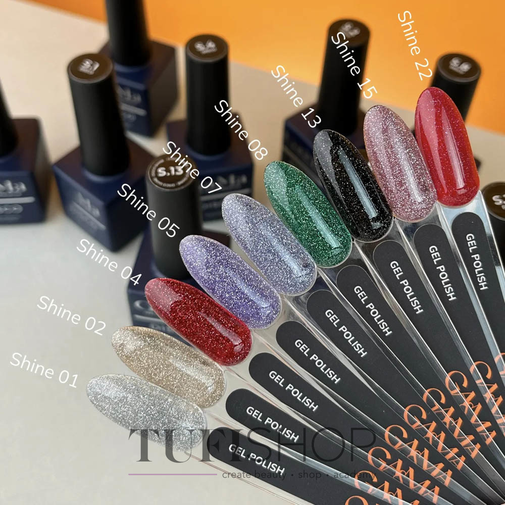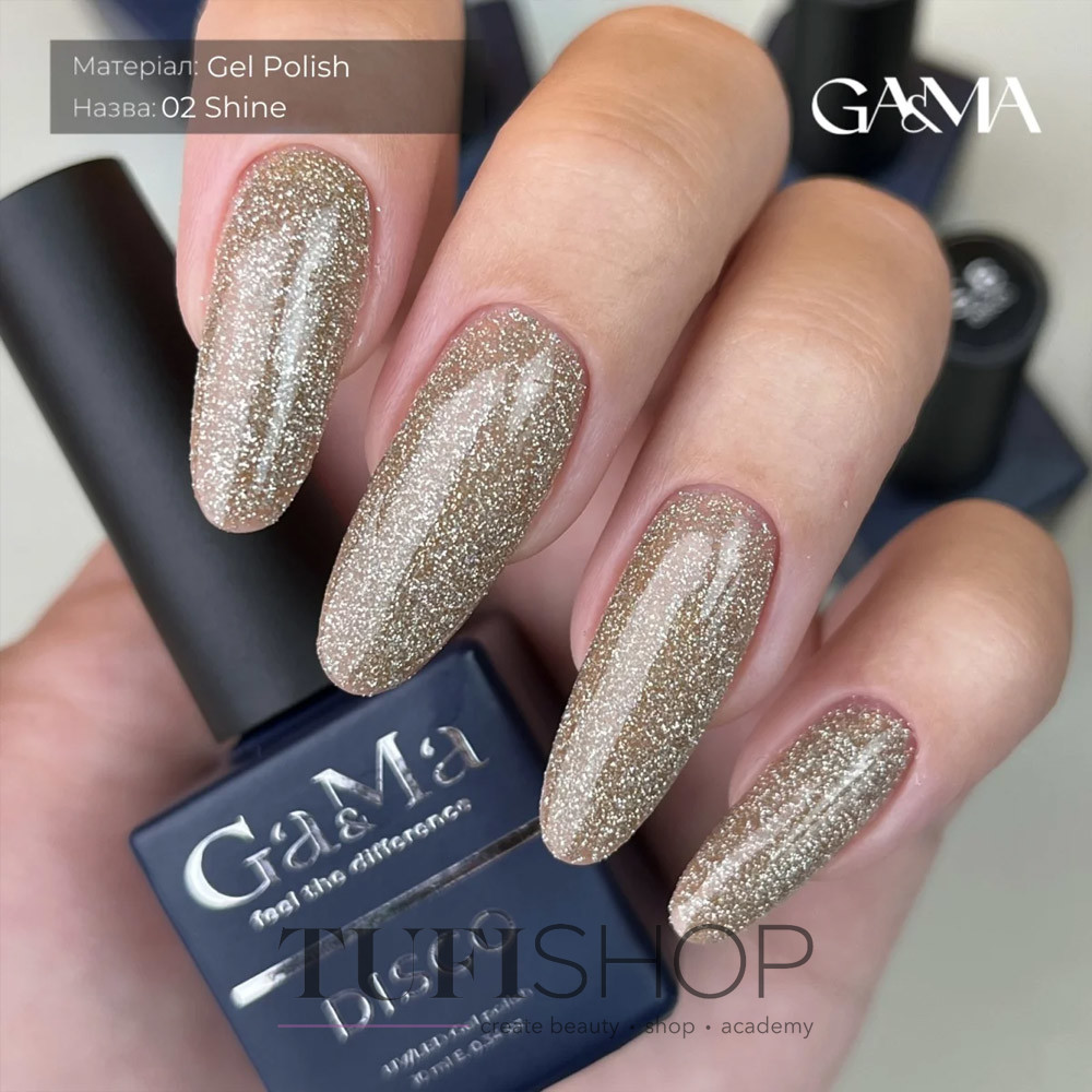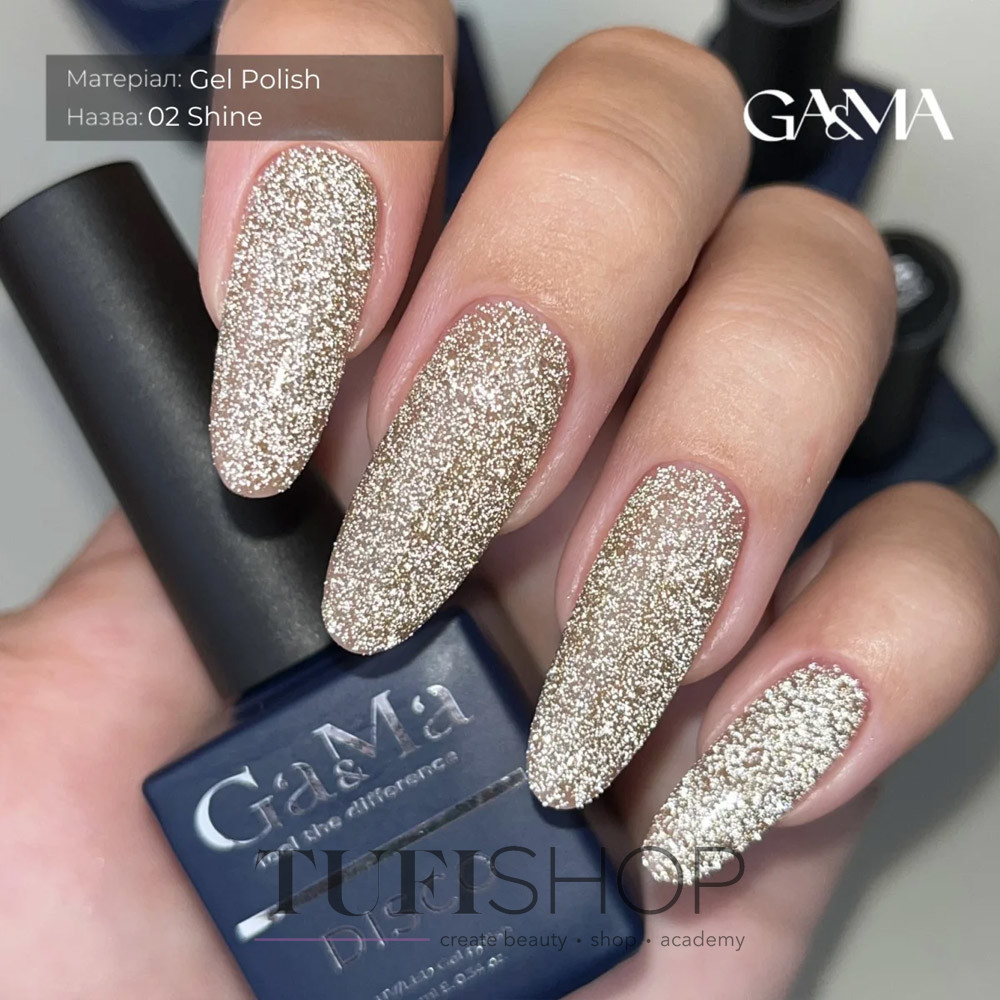Гель-лак GA&MA Shine - это коллекции гель-лаков, которые создают эффект мерцающего блеска на ногтях. Эти gama гель-лаки отражают световые лучи, придают ногтям яркость и гламурный вид. Такой продукт может быть популярным среди тех, кто предпочитает выразительные и эффектные маникюры.