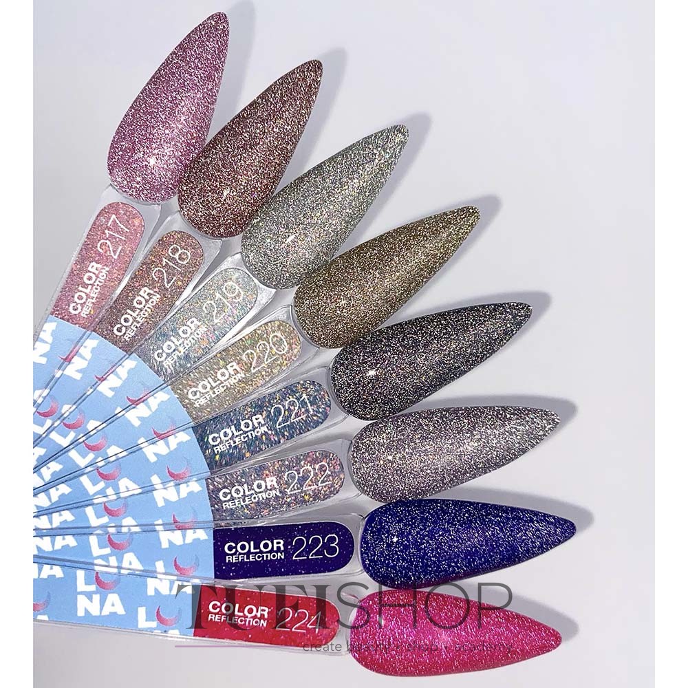 Гель-лак LUNA - профессиональный цветной гель-лак для ногтей высокого качества. Обладает оптимальной консистенцией, за счет чего легко наносится на ноготь. Не ложится полосами при нанесении и легко выравнивается. Гель-лак LUNA идеально пигментированный, который можно нанести как в один, так и в два тонких слоя. Удобная бутылочка и качественная кисточка гарантируют равномерное распределение лака по всей ногтевой пластине, без затекания и пропусков. Светоотражающие гель-лаки LUNA Reflection превращают обычный маникюр во что-то волшебное. В состав входят специальные светоотражающие частицы, которые при разном освещении сияют абсолютно по-разному.
