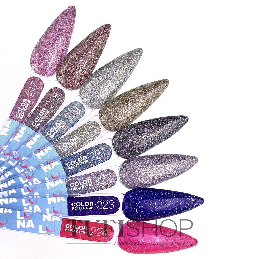 Гель-лак LUNA - профессиональный цветной гель-лак для ногтей высокого качества. Обладает оптимальной консистенцией, за счет чего легко наносится на ноготь. Не ложится полосами при нанесении и легко выравнивается. Гель-лак LUNA идеально пигментированный, который можно нанести как в один, так и в два тонких слоя. Удобная бутылочка и качественная кисточка гарантируют равномерное распределение лака по всей ногтевой пластине, без затекания и пропусков. Светоотражающие гель-лаки LUNA Reflection превращают обычный маникюр во что-то волшебное. В состав входят специальные светоотражающие частицы, которые при разном освещении сияют абсолютно по-разному.
