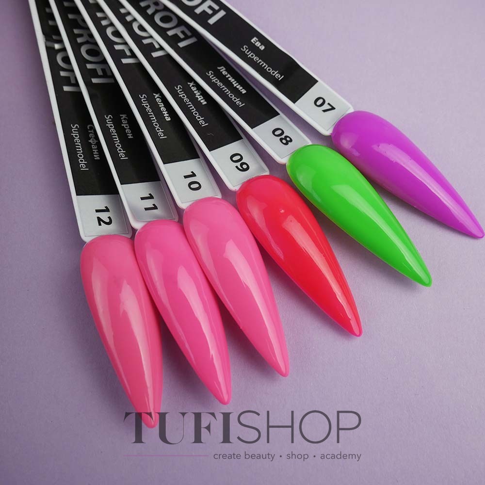 TUFI profi PREMIUM Supermodel – серия модных неоновых гель-лаков. Разработана для ярких девушек, которые умеют и любят выделяться. Технологи TUFI profi вдохновлялись супермоделями 90-х: Наоми Кемпбел, Линдой Евангелистой, Клаудией Шиффер и другими настоящими, яркими, обворожительными иконами 90-х. Неоновые цвета гель лаков идеально подойдет для самых фантастических нейл-дизайнов. Если в этой жизни ты готова покорить любые вершины, сделай яркий маникюр, вырази свою сущность! Особенно эффектно коллекция смотрится в матовом исполнении.