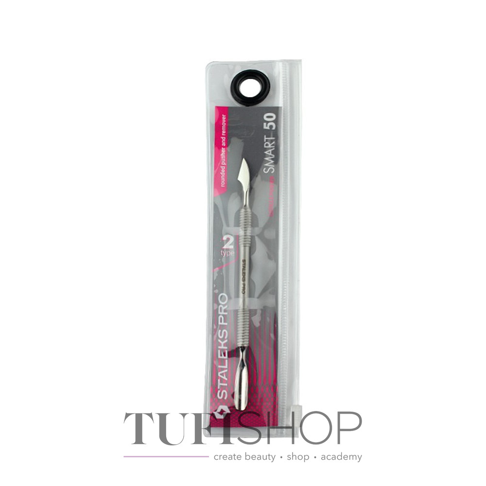 Лопатка маникюрная Staleks SMART 50 TYPE 2 (скругленный пушер+топорик) - классический инструмент мастера маникюра. Лопатку для маникюра применяют для моделирования и отодвигания отросшей кутикулы. Лопатка бренда Staleks имеет две рабочие поверхности, что позволяет работать с ногтевой пластиной разных размеров. Маникюрная лопатка Staleks выполнена из нержавеющей стали, что обеспечивает длительное использование изделия и возможность стерилизации или дезинфекции. Пушер обладает эргономичной формой и оптимальной длиной, что позволяет удобно ею пользоваться. Лопатку Сталекс сможет использовать как опытный мастер маникюра, так и новичок. Для лучшего результата предварительно нужно размягчить кутикулу с помощью ремувера. Лопатка Staleks – это качественный инструмент, который сделает маникюр легким и безопасным.