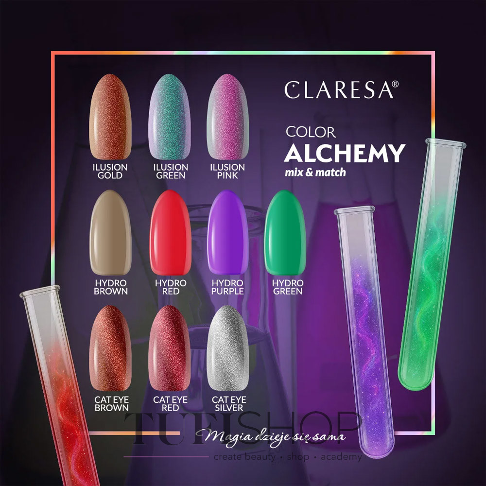 В древних книгах алхимиков цвет обладал силой преображения – обычный металл мог превратиться в золото, а свет раскрывал скрытые цвета. Из этого вдохновения родилась COLOR ALCHEMY – коллекция гель-лаковых эликсиров, которые сочетают в себе три загадочных эффекта: Cat Eye, Ilusion и Hydro Glass. Смешивайте их друг с другом, наносите слоями, экспериментируйте со светом и углом зрения. Это не просто коллекция – это ваша лаборатория цветов.