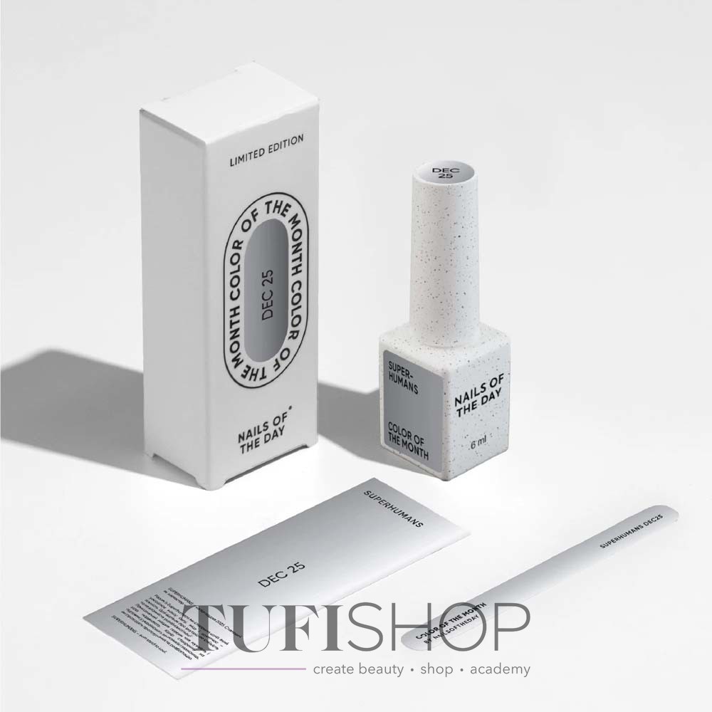 SUPERHUMANS — цвет декабря 2025. Стальной, как характер. Совместно с Superhumans создан оттенок, который отражает силу, стойкость и внутреннюю нежность. Этот цвет — о несгибаемости и мужестве украинской нации. Он посвящён героям, чья смелость и вера ежедневно вдохновляют. Стальной оттенок выпущен в поддержку украинских защитников и защитниц, проходящих протезирование и реабилитацию. Все средства от продажи декабрьского цвета будут направлены на протезирование военных, потерявших конечности.