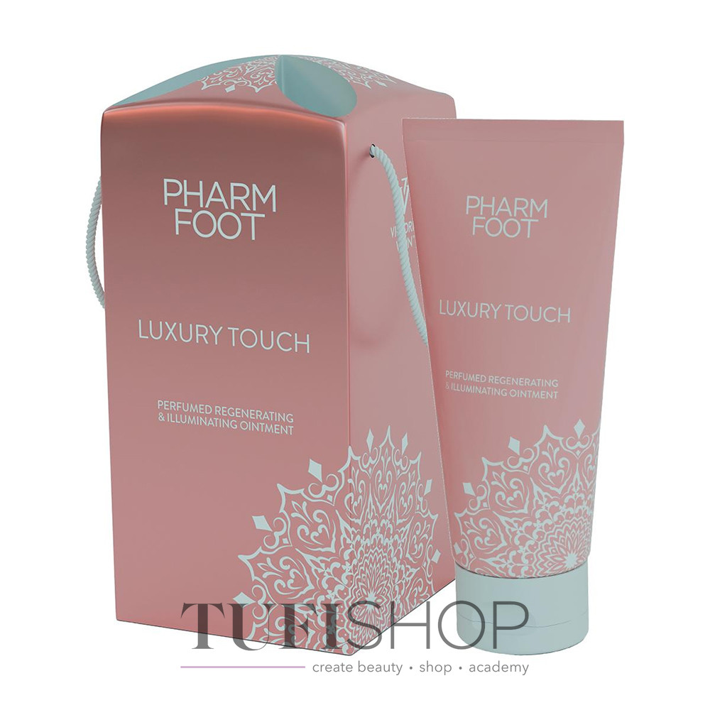 PHARM FOOT Luxury TOUCH - роскошная восстанавливающая мазь для рук, ног и тела с эксклюзивным парфюмированным ароматом и золотистым сиянием. Упакована в изысканную металлическую коробку с ручкой-шнурком — готовый, стильный подарок.